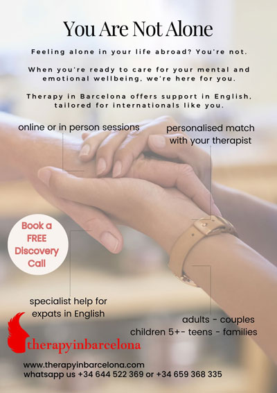 At Therapy in Barcelona, we understand that life as an international can be exciting but also filled with challenges. Our team of caring, experienced, English Speaking and multilingual therapists, all expats themselves, are here to help.